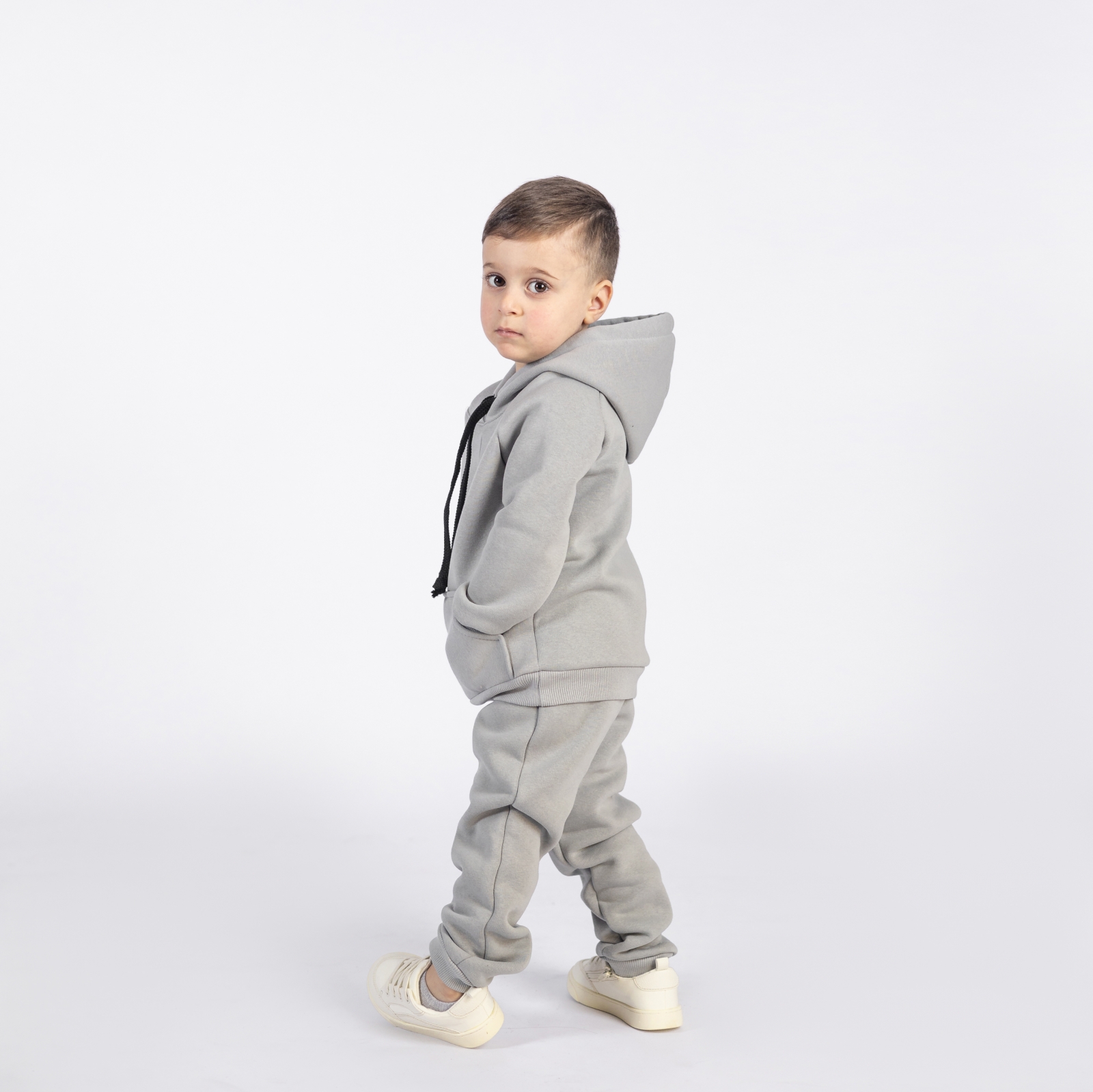 Купить оптом 296-С. Свитшот с капюшоном + Штаны, хлопок 65%, 35% ПЭ, 3-х нитка (начес) серый 146,152,158 в Северске