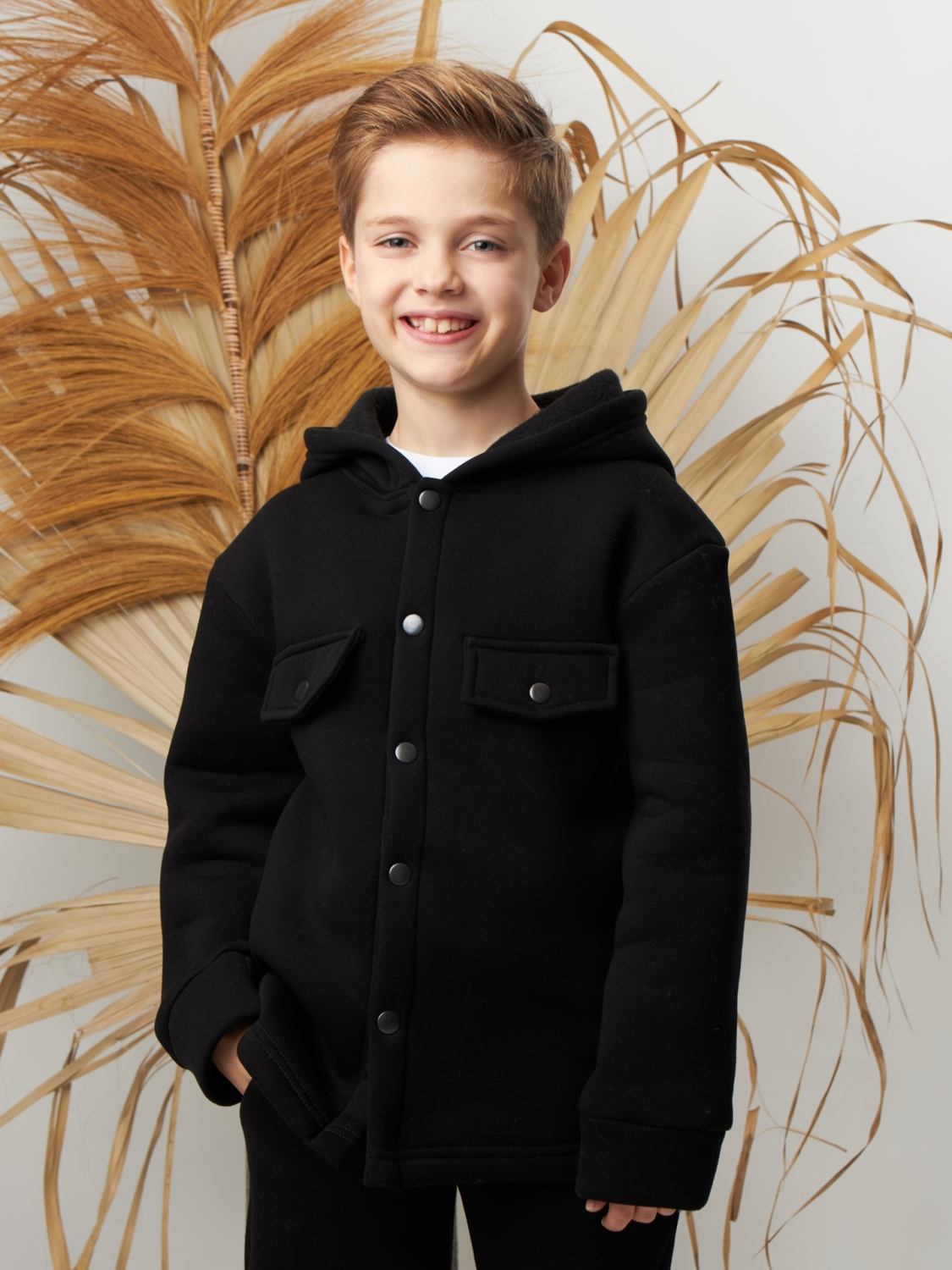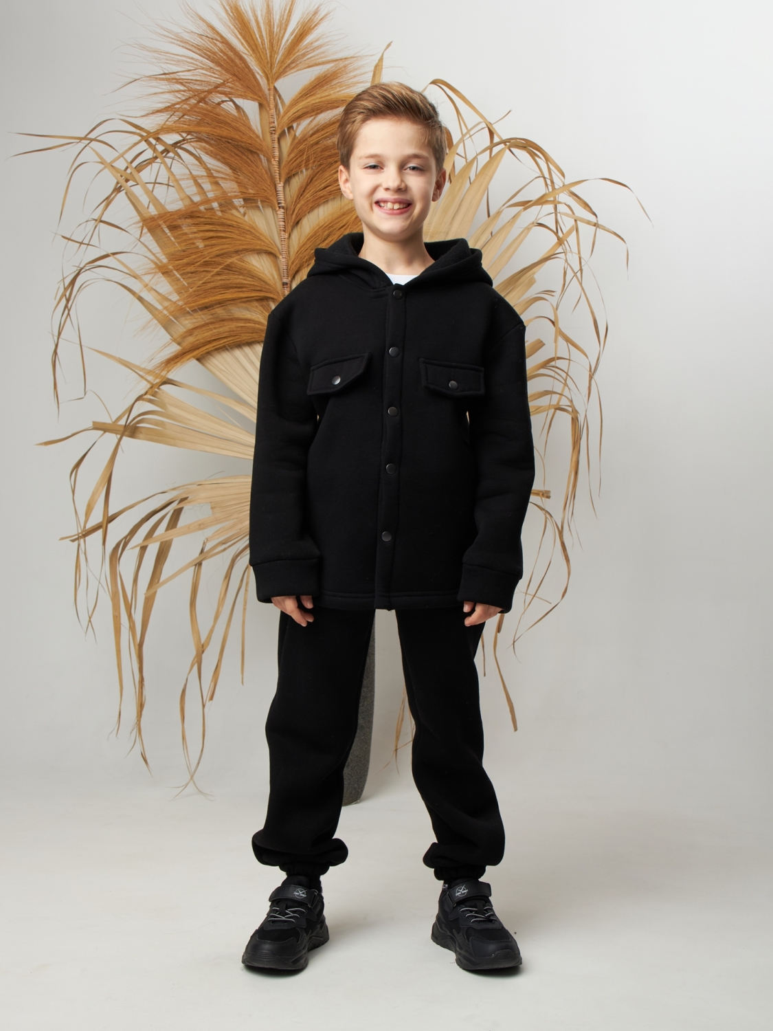 333. Костюм детский (Брюки+Толстовка) на кнопках, черный, хлопок 65%, 35% ПЭ, 3-х нитка с начесом 122,128,134,140